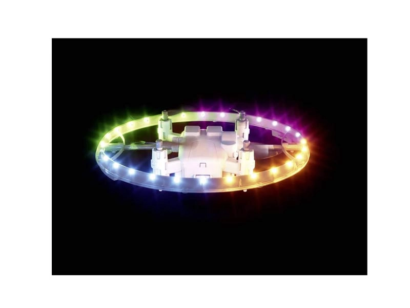 Χαρακτηριστικά: 4 κανάλια - Γυροσκόπιο υψηλής τεχνολογίας - Φωτισμος LED - Τηλεχειριστήριο 2.4GHz - Χρόνος πτήσης 7 λεπτά - Xρόνος φόρτισης 30 λεπτά - Βάρος 48g -Μπαταρία Li lon 3,7V / 500 mAh - Φορτιστής USB - Multi-LED δακτύλιος rotaion με δροσερά εφέ φωτός - Δακτύλιος περιστροφής LED με δυνατότητα εναλλαγής μέσω πομπού - Aισθητήρας ύψους - 3 επίπεδα ταχύτητας-