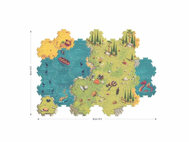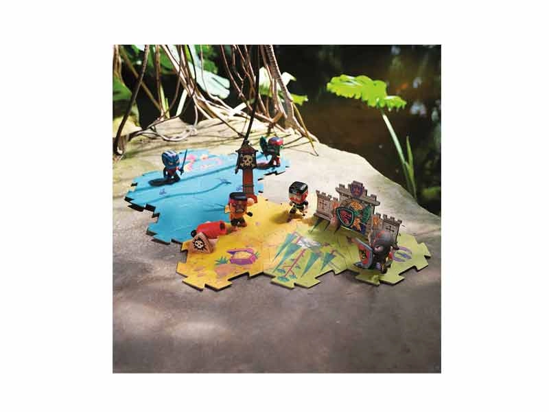 Puzzle of the Arty Toys series by the Djeco company, consisting of 30 very large pieces that are easily joined together and made of durable hard pressed cardboard. Children are asked to put together a puzzle to create a battlefield, consisting of either sea with hidden pirate lairs and sea monsters, or land with forests and hidden weapons! Each time they play, they can put the pieces together differently and create new battlefields to play with their pieces and turn the puzzle into a role-playing game! They match perfectly with all the figures of knights and pirates of the Arty Toys series of the Djeco company. A fun game that unleashes children's imagination and develops their creativity, allowing them to act out their own imaginary scenarios and develop their oral language, while also acting as a means of socialization.