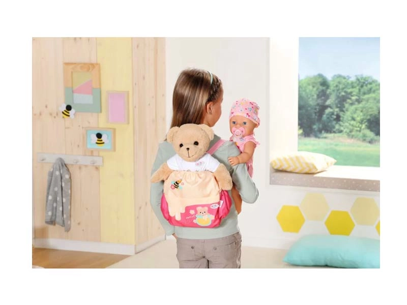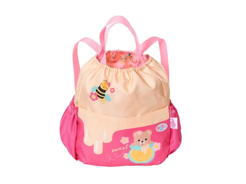 Thanks to this cute backpack with a honey bee print, your BABY born bear is always with you.